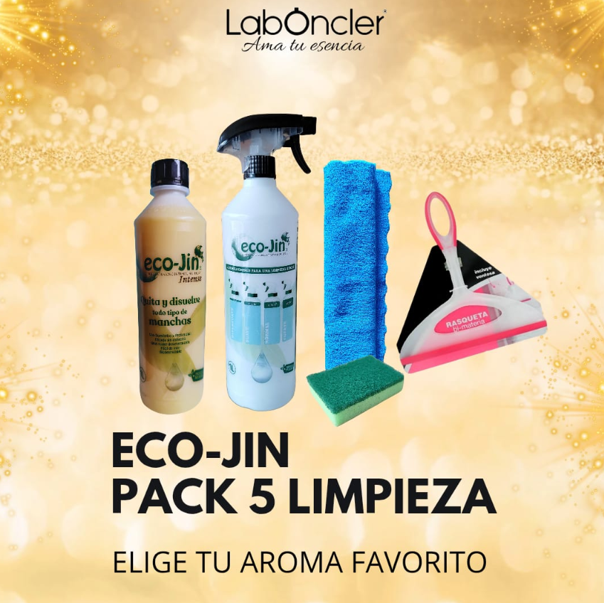 PACK 5 Limpieza ECOJIN + DIFUSOR + RASQUETA LIMPIA CRISTALES + BAYETA MICROFIBRA + ESTROPAJO CON ESPONJA